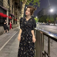 這件V領碎花裙夏日必穿 顯臉小超吸睛 花紋清新有質感 涼感透氣超親膚 寬鬆自在 修身感超漂亮